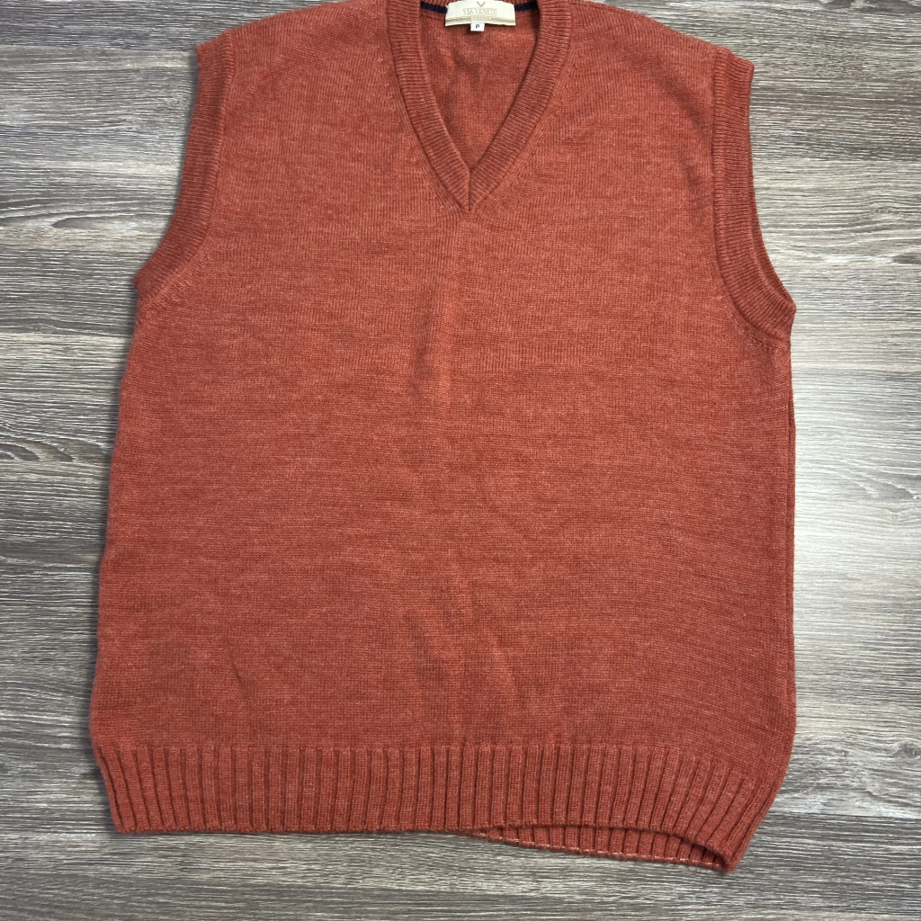 Colete artesanal em acrílico laranja vibrante – ideal para sobreposições e visual autêntico.