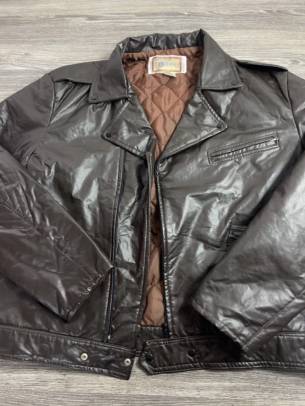Jaqueta de alta qualidade com visual vintage. Cor café, forro acolchoado e fecho em zíper e botões de pressão. Tecido em poliéster que não descasca.