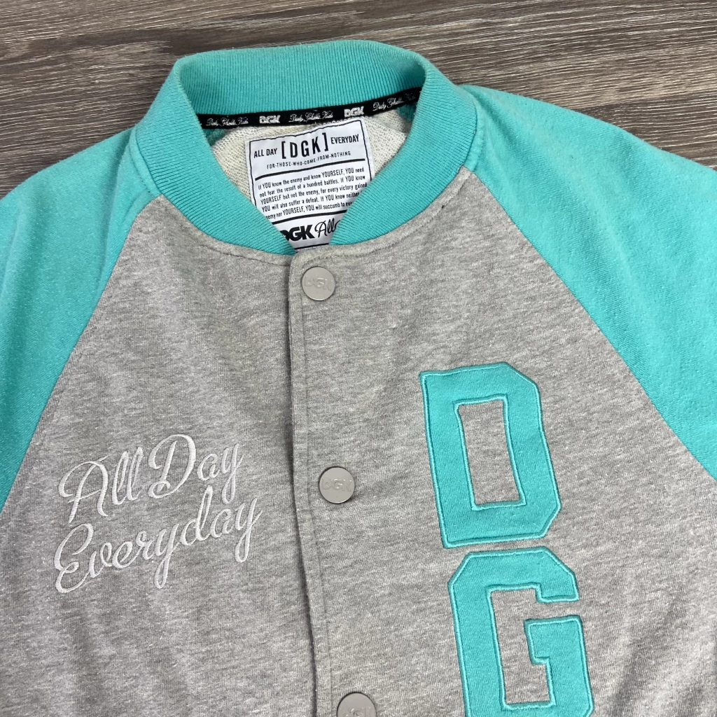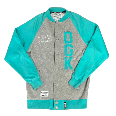 Estilo street no formato bomber, tecido em algodão, fecho em botões de pressão e modelagem grande.